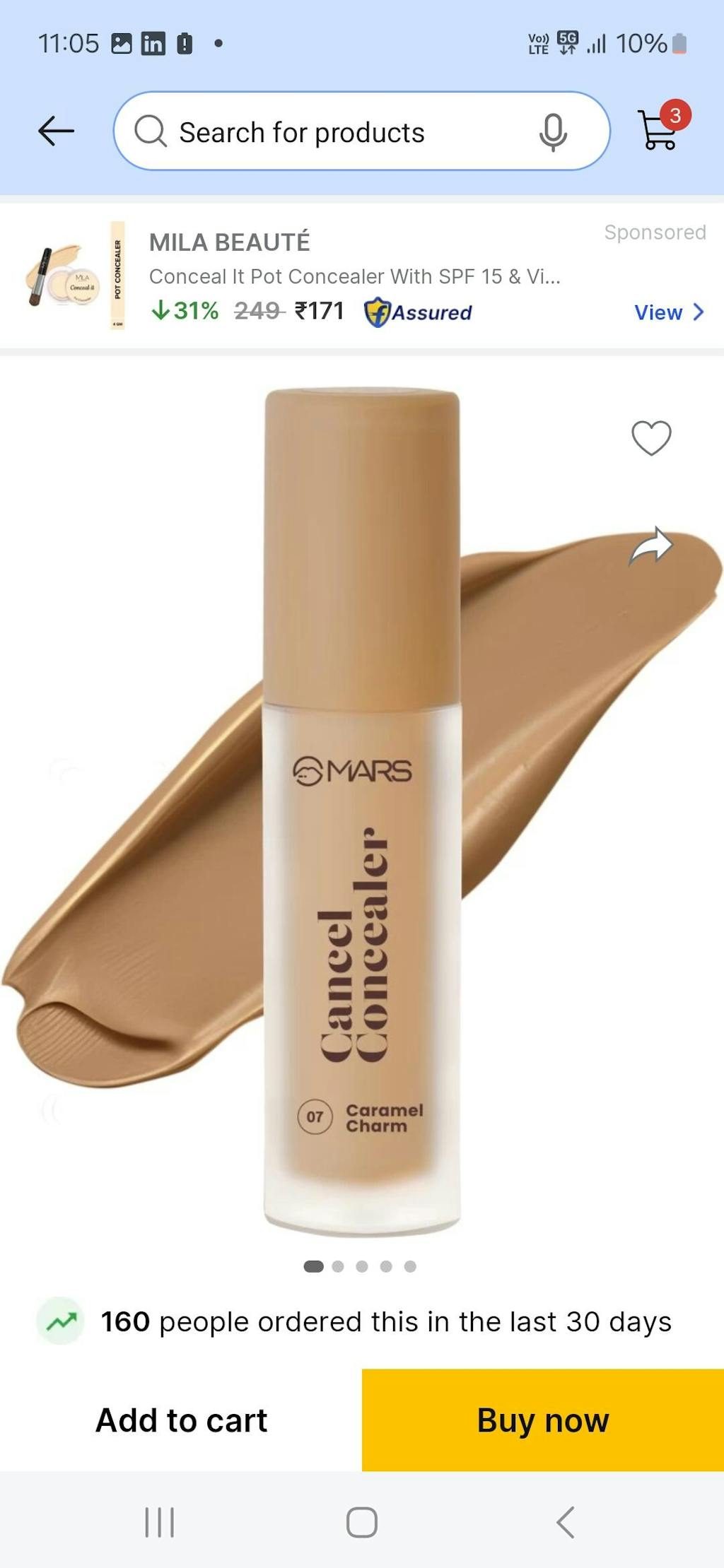Great Coverage with a Natural Look: MARS Cancel Concealer effectively hides dark circles and blemishes, giving you a smooth, radiant finish. It blends seamlessly with your skin, ensuring a flawless look that feels light and natural.