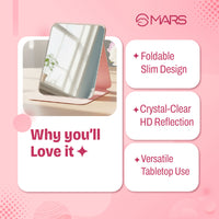 MARS Foldie – Portable Foldable Makeup Mirror with Adjustable Stand | HD Frameless Beveled Design | Travel-Friendly PU Leather Vanity Mirror for Desk, Dresser & Bathroom.