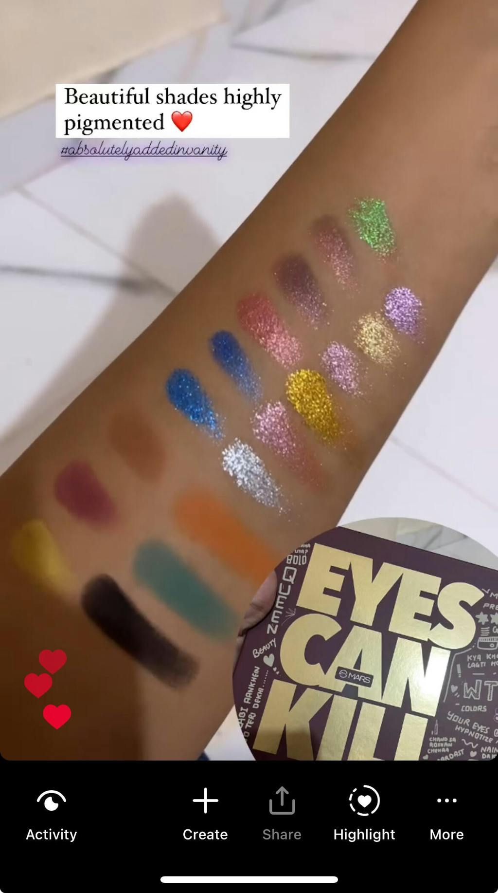 44 മാറ്റുകൾ, 10 ഷിമ്മറുകൾ, 9 പ്രെസ്ഡ് ഗ്ലിറ്ററുകൾ എന്നിവ ഉൾക്കൊള്ളുന്ന 63 ഷേഡുകളുടെ പവർഹൗസ് ശേഖരമായ MARS Eyes Can Kill Eyeshadow Palette ഉപയോഗിച്ച് നിങ്ങളുടെ കലാപരമായ കഴിവ് പുറത്തെടുക്കൂ . ദൈനംദിന ന്യൂട്രലുകൾ മുതൽ ബോൾഡ് ബ്രൈറ്റുകൾ വരെ, സോഫ്റ്റ് ഗ്ലാം മുതൽ ഫുൾ-ഓൺ ഡ്രാമ വരെയുള്ള ലുക്കുകൾക്ക് ഈ പാലറ്റ് അനന്തമായ സാധ്യതകൾ വാഗ്ദാനം ചെയ്യുന്നു .