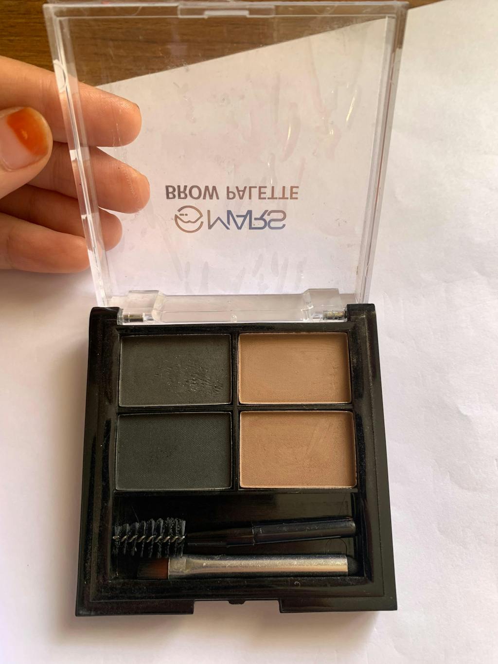 ഈ ഐബ്രോ പൗഡർ പാലറ്റിൽ ടാൽക്ക്, മൈക്ക, കയോലിൻ, ടൈറ്റാനിയം ഓക്സൈഡ്, മഗ്നീഷ്യം സ്റ്റിയറേറ്റ്, C177491, C177492, C177499,26# മിനറൽ ഓയിൽ, എൽസൂക്റ്റൈൽ പാൽമിറ്റേറ്റ്, പെർഫം (ഫ്രാഗ്രൻസ്) ഡൈമെത്തിക്കോൺ എന്നിവ അടങ്ങിയിരിക്കുന്നു.