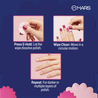 ഞങ്ങളുടെ മിസ് വൈപ്പ് ഔട്ട്, അസെറ്റോൺ-ഫ്രീ നെയിൽ പോളിഷ് റിമൂവർ വൈപ്പുകൾ ഉപയോഗിച്ച് എപ്പോൾ വേണമെങ്കിലും എവിടെ നിന്നും നിങ്ങളുടെ നെയിൽ പോളിഷ് എളുപ്പത്തിൽ നീക്കം ചെയ്യുക. വേഗത്തിലുള്ളതും കുഴപ്പമില്ലാത്തതുമായ ഉപയോഗത്തിനായി രൂപകൽപ്പന ചെയ്‌തിരിക്കുന്ന ഈ പ്രീ-നനഞ്ഞ പാഡുകൾ , നിങ്ങളുടെ നഖങ്ങൾ ഉണങ്ങുകയോ കേടുവരുത്തുകയോ ചെയ്യാതെ സൌമ്യമായി ലയിപ്പിച്ച് പോളിഷ് നീക്കം ചെയ്യുന്നു.