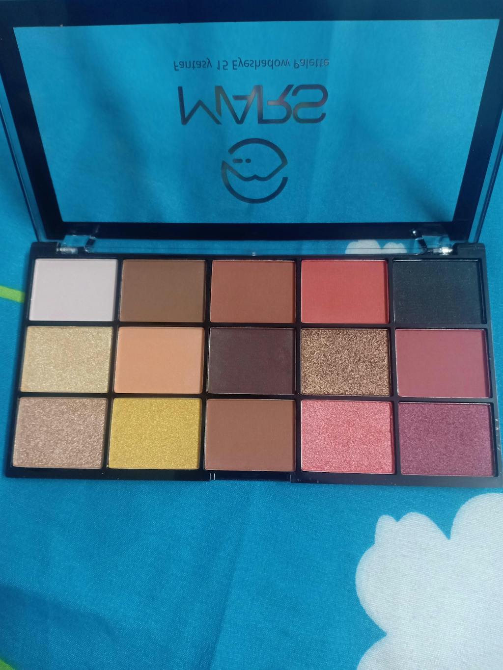 This 15 Color Eyeshadow Palette contains Mica, Talc, Magnesium Stearate, Paraffinum liquidum, Ethylhexyl Palmitate, Polyethylene Wax, Dimethicone, Polybutene, Propylparaben, Methylparaben, Pigments may contain: Red Iron Oxide( C177491),Brown Iron Oxide (C177491/92 /99), Yellow Iron Oxide (C177492), Iron Blue (C177510),Chromium Oxide Green (C177288),Red 40 Al Lake (C116035), Manganese Violet(C177742), Titanium Dioxide (C177891), Ultramarine Blue (C177007), Black Iron Oxide (C177499), Yellow 5 Al Lake (CI19140), Black 2(C177266).